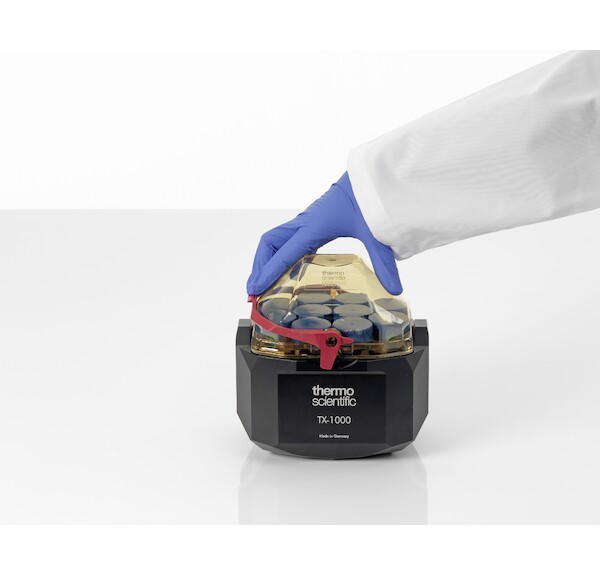 • Motorizovaná západka víka umožňuje snadné zavření a uzamčení víka odstředivky jedním prstem - i na vyšších stolech.