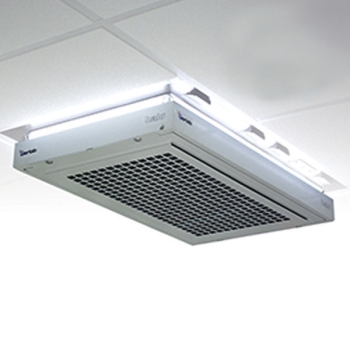 Stropní filtrační jednotky pro adsorpci škodlivých látek v místnosti a monitoring kvality vzduchu v laboratoři.
